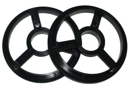 Adapter do szpul drutu MIG/MAG nawijanych na kosze druciane o rozmiarze fi 300 mm(15-18kg). Komplet składa się z dwóch plastikowych kół. Średnica wewnętrzna otworu pasuje do wszystkich modeli półautomatów występujących na naszym rynku.
