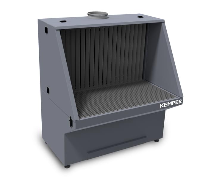 Stoły szlifierskie z dolną częścią stolika i układem wychwytywania na ścianie tylnej do iskier stanowią czyste i bezpieczne rozwiązanie do zastosowania przemysłowego. Umożliwiają połączenie z centralną instalacją odsysania i są dostępne w różnych wielkościach. Izolowane akustycznie ściany boczne mogą być składane przy obróbce większych przedmiotów.