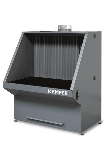 Stoły szlifierskie z dolną częścią stolika i układem wychwytywania na ścianie tylnej do iskier stanowią czyste i bezpieczne rozwiązanie do zastosowania przemysłowego. Umożliwiają połączenie z centralną instalacją odsysania i są dostępne w różnych wielkościach. Izolowane akustycznie ściany boczne mogą być składane przy obróbce większych przedmiotów.