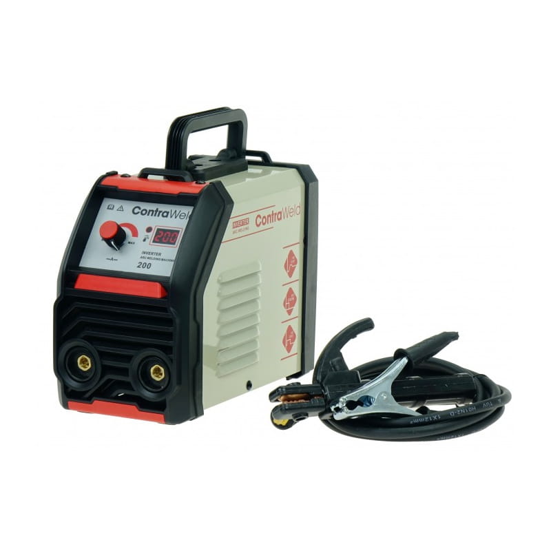 Mała i poręczna spawarka 200A ControlWeld w zestawie z uchwytem masowym i elektrodowy.