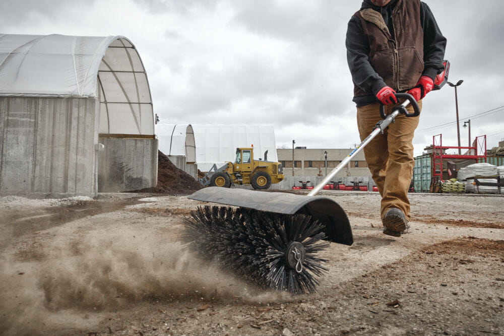 Szczotka druciana do zamiatania mokrych liści, kamieni, piasku i żwiru oraz innych zanieczyszczeń z chodników, ścieżek, podjazdów, tarasów