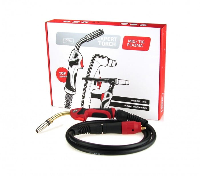 Profesjonalny uchwyt spawalniczy do urządzeń MIG. Prąd spawania dla cyklu pracy 60%: 250A (gaz CO2), 220A (mieszanka Ar/CO2). Długość 5 metrów.