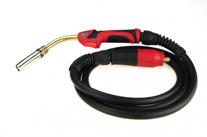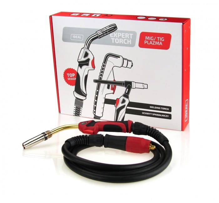 Profesjonalny uchwyt spawalniczy do urządzeń MIG. Prąd spawania dla cyklu pracy 60%: 300A (gaz CO2), 250A (mieszanka Ar/CO2). Długość 5 metrów.