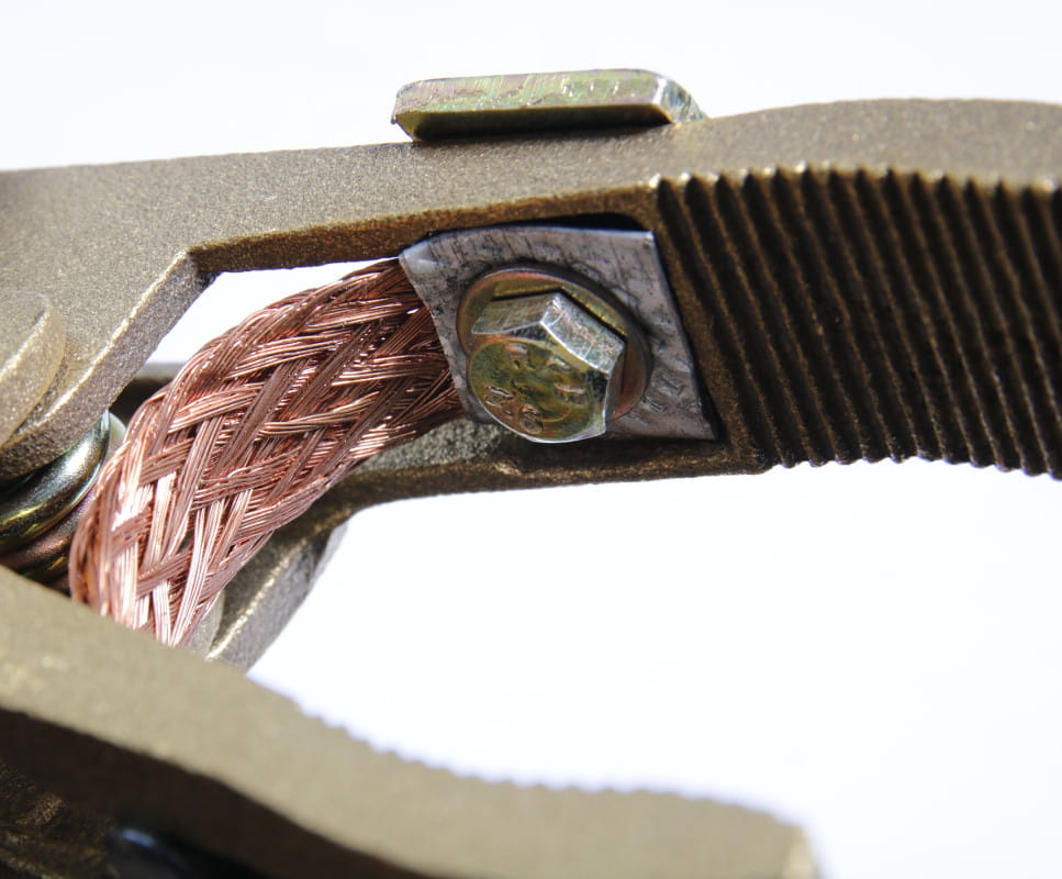 Zacisk spawalniczy mosiężny przeznaczony do pracy pod obciążeniem 400A w cyklu 35%. Możliwość zastosowania przewodu spawalniczego o średnicy 70mm2 sprawia że może być używany w warunkach przemysłowych. Miedziana taśma i solidna sprężyna sprawiają, że jest to masywny uchwyt masowy, niezbędny podczas codziennych prac spawalniczych.